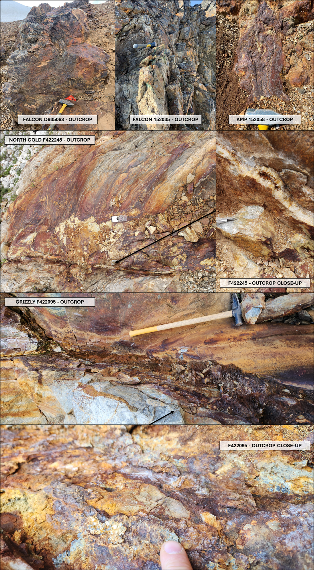 Gold-bearing calcite and quartz-carbonate veins at Jackie, Pete’s, Grizzly, Falcon, Amp, and North Gold are interpreted as late, structurally focused feeders tapping the Sulphide City Porphyry system, confirming the connectivity of the mineralized corridors.